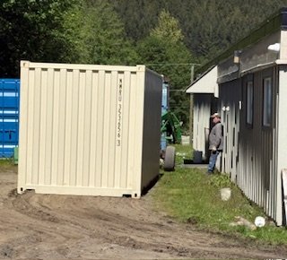 The Sayward Food Table took delivery of a sea can on May 8th, 2025 to use as a storage unit. It is located behind the Kelsey Centre. A big thank you to Ted Ellis and Hans Hoepfner, who volunteered their time and expertise to place the container and work on the interior. The container will be equipped with a fridge, freezer, storage shelves and food preservation by early June.